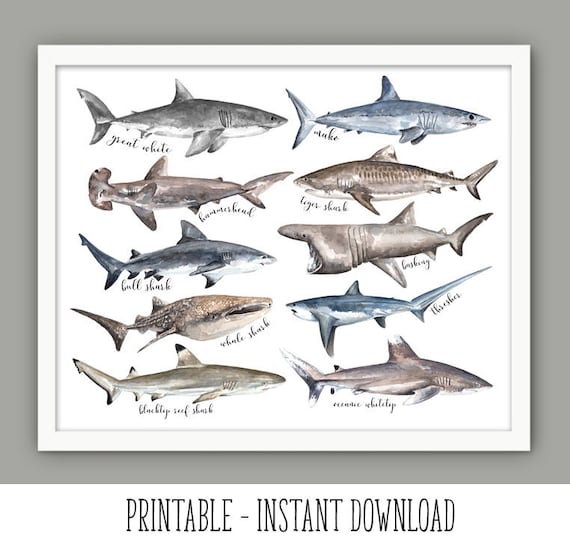 Shark Poster Shark Print Shark Species Watercolor Sharks Etsy Ireland